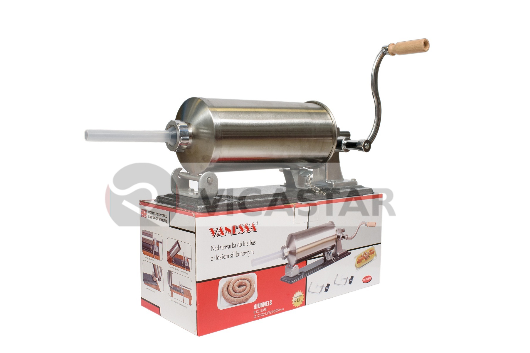 Masina manuala de facut carnati, 4.0kg, orizontala, 4 palnii 17mm, 21mm, 25mm, 29mm